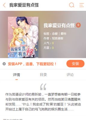 我家爱豆有点怪 2025-07-20 15:08 2025-07-20 15:08 开始阅读 微信阅读 简介: 漫画《我家爱豆有点怪》讲诉了自己一觉醒来居然发现“什么!我变成了我‘黑’的爱豆!”,本来是个设计师的她,一直幻想能够走向国际。可是这该怎么办? 版权声明:转载此文是出于传递更多信息之目的,漫画漫画或转稿中文字或漫画图片来源于:互联网(网络),如涉及版权等问题,请作者持权属证明与本网联系,我们将及时更正、删除,谢谢您的支持与理解。 上一篇:我家NPC太难撩 下一篇:我家陛下变小了